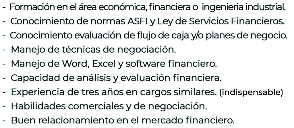 • OFICIAL DE SERVICIOS FINANCIEROS – COCHABAMBA