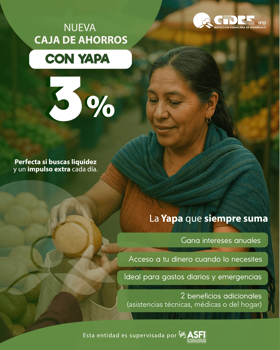 CIDRE  IFD es una entidad financiera con más de 40 años de experiencia especializada  en el desarrollo del sector rural, con presencia a nivel nacional, con productos financieros diseñados para atender y satisfacer de la mejor manera las necesidades de los sectores productivos del país y está supervisada por la Autoridad de Supervisión del Sistema Financiero ASFI.